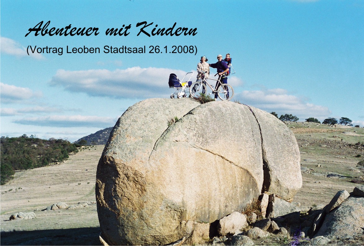 | Being in the wilderness with Karin and our children is the ultimate fun for me. I am a strong believer that children of any age love to be great adventurers and we have certainly enjoyed seeing how our children love the wildest places on Earth - from northern Greenland to the Himalayan jungles. Of course they themselves may have completely different ideas of fun - so if you want to know how Tarim and Teja feel about this - go directly to their own pages above. The image at right is from one of our first adventures as a family - in the You Yangs near Melbourne (the image was used for a public lecture on "adveturing with children") |
